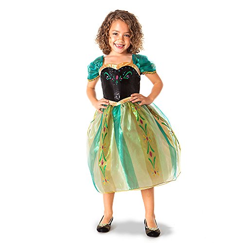 -. Feature : DRESS UP COSTUME: This cute costume for little girls will let their imagination take off to Arendelle and help them bring Frozen fantasies to life. Includes 1 Princess Anna dress. / BEAUTIFUL FABRIC & DETAILS: Sparkling sequin bodice, shimmering organza fabric, colorful glitter floral designs, iridescent gold trim, ruffled shoulders edged with gold braid, and a full ball gown with double layered underskirt will make her feel like a real princess. / MANY USES: Makes a great halloween costume, perfect for a princess birthday costume party, great for every day dress up games and fun, ideal for the child that loves Frozen clothes, or give it as a gift. / GENUINE, HIGH QUALITY: This Frozen costume is a high quality dress from the Official Disney Store Collection for Kids. It features careful details and pretty fabrics true to princess Anna's style. / FROZEN FAVORITE: This dress is styled after Princess Anna's Coronation gown from Disney's movie Frozen and let's your kid dress "just like Anna".