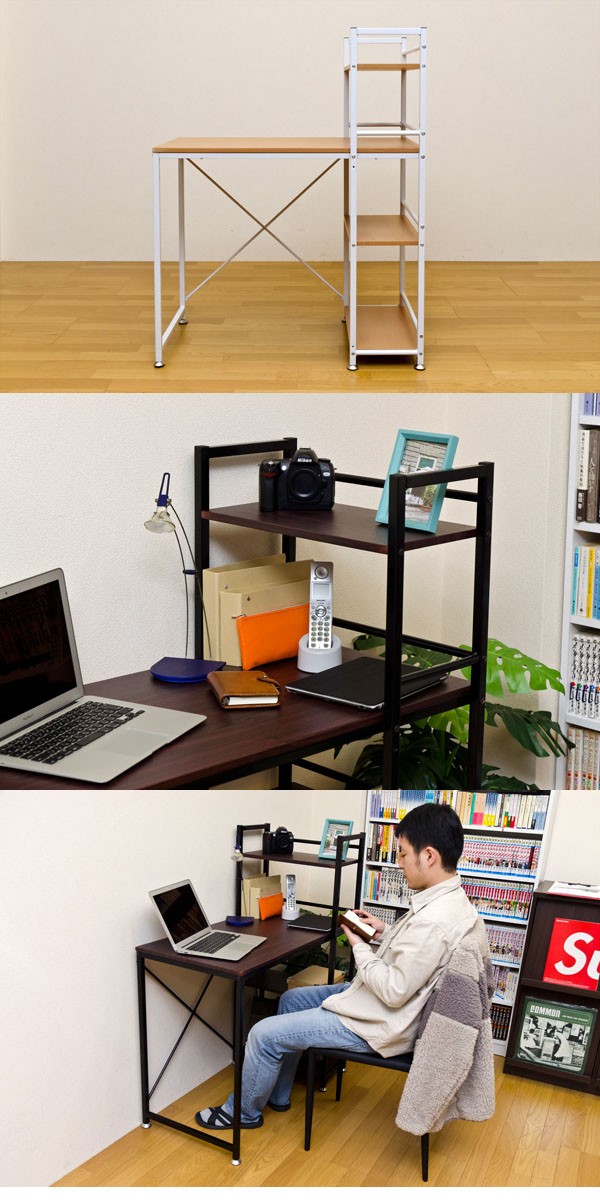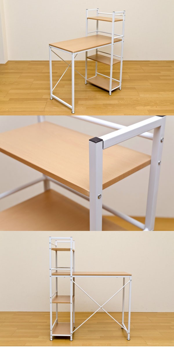 | サイズ | ■幅905×奥行525×高さ1140mm(梱包サイズ:幅1200×奥行525×高さ90mm) デスク天板サイズ:幅900×奥行460mm 棚板サイズ:幅460×奥行245mm ×3枚 天板・棚板厚み:15mm デスク天板下高さ:710mm パイプの太さ:20mm角