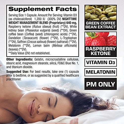 Be Better. Be Stronger. BPI Nighttime Weight Management† Non-Stimulant Formula Green Coffee Bean Extract Raspberry Ketone Vitamin D3 Melatonin PM Only 30 Servings Dietary SupplementMay Experience: Weight loss† Appetite Management† Bedtime Relaxation††When combined with a proper exercise and nutrition regimen. Statements based on early-stage independent 3rd party vivo and / or in vitro model scientific research date findings for individual ingredients.