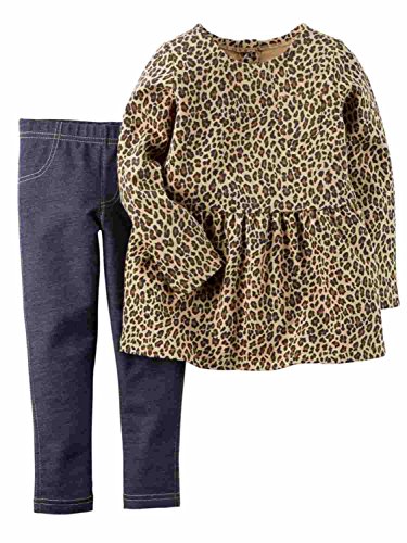 -. Title : Carters Infant Girls Brown Leopard P.R.Int Shirt & Denim Look Leggings Outfit