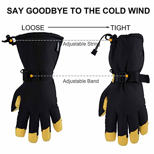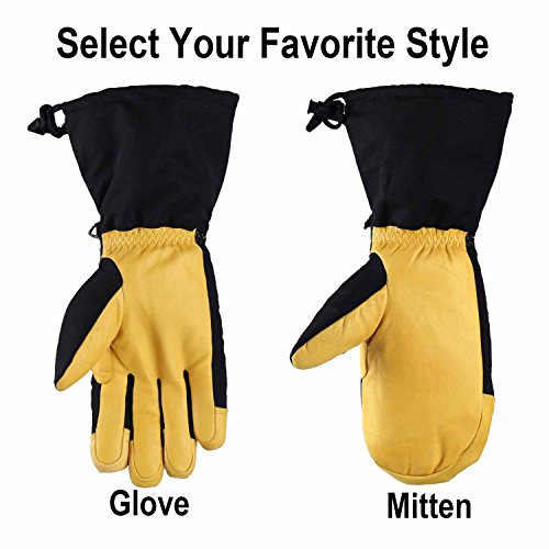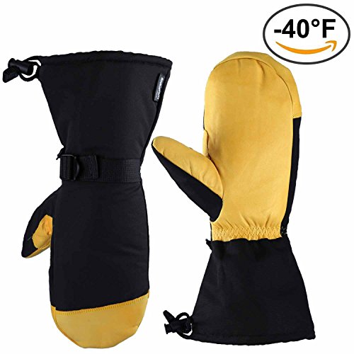 -. Feature : SUPER WARM AND COMFORTABLE - Ozero's long ski gloves are lined with TR cotton and filled with 150g per inch of 3M Thinsulate thermal cotton to provide superior warmth in cold climates. These gloves will keep your hands warm in temperatures as low as -40ºF. / WINDPROOF, WATER-RESISTANT, YET BREATHABLE - The unique design of Ozero's winter gloves feature windproof and water-resistant nylon which protects your skin from harsh weather but allows air to flow through the gloves to keep your hands comfortable and sweat-free. / GREAT FOR WINTER CHORES AND OUTDOOR FUN - These Thermal gloves with 5 inches extra long sleeves are perfect for men or women. The adjustable belt at the wrist and elastic at the cuff allow you to keep warmth in the heavy wind and snow out. The leather palm adding a cowhide patch between thumb and forefinger provides superior durability and aids in grip on shovels, ski poles or hockey sticks. / AVAILABLE AS GLOVES OR MITTENS - Ozero's winter sports gloves are available as gloves and mittens. The glove design gives your fingers more flexibility. The mittens keep your fingers closer together, which enhances warmth but each finger has its own space inside the glove so they are comfortable. / PERFECT FIT - Choose from L , XL ,XXL for a perfect fit and Gloves, Mittens for your love. Measure your hand circumference to find the right size on the image diagram.If you are debating between two sizes, choose the larger size.