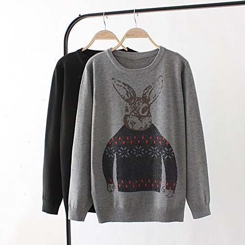 -. Title : ChandlerGrant Women's Round Rabbit Printed Knitted Long Sleeve Pullover Sweaters