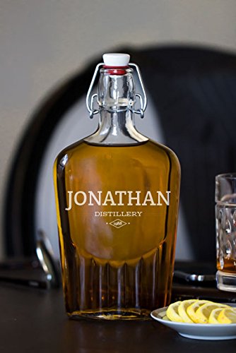 -. Title : Modern Distillery17 Ounce Glass Flask Bottle, Drinkware Barware, First Name Engraved, From Daughter to Dad Friend Birthday Gift