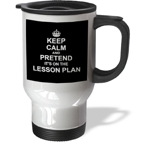 3dRose tm_179738_1 Black Keep Calm and Pretend Its on The Lesson Plan Funny Teacher Gift Travel Mug, 14-Ounce, Stainless Steel