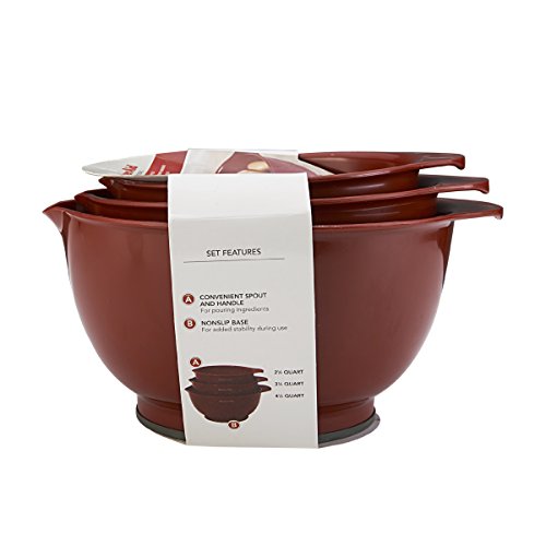 - The pour spout on each bowl helps reduce spills when transferring mixes.