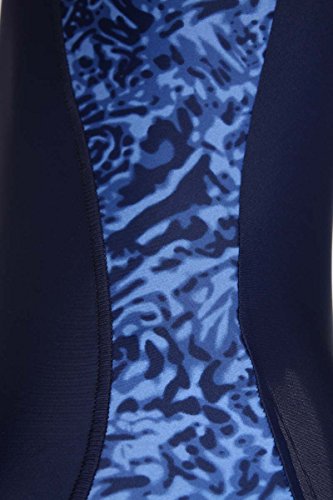 Uget Women's Conservative show thin round neck One-piece Bathing suit-Blue Large