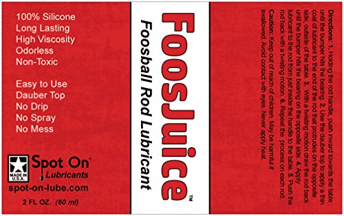 100% SILICONE ROD LUBRICANT formulated for use on most modern foosball tables. High viscosity, long lasting, advanced formula works great for both home and heavy duty commercial tables, without damaging the bearings and bumpers like oil based lubricants.