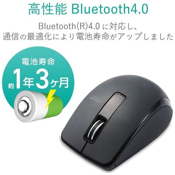 ●省電力性を重視して開発されたBluetooth(R)4.0対応で、電池寿命がアップ 手にフィットする高さで握りやすい、Bluetooth(R)4.0 BlueLEDワイヤレスマウス。