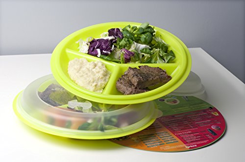 DISHWASHER and MICROWAVE SAFE: This portion control plate on Amazon can be safely used in the microwave whenever you want to heat food or keep it warm. Cleaning the portion control dinnerware is a breeze: just toss the plates in the dishwasher and you will have them cleaned very quickly