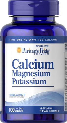 -. Binding : Health and Beauty -. Brand : Puritan's Pride -. EAN : 0074312119903 -. Feature : We are the manufacturer and the only authorized seller of this product. / This product has been made with the highest quality ingredients available. / Over 40 years in business and 19 million customers served. / Satisfaction guaranteed or your money back. -. Label : Puritan's Pride -. Manufacturer : Puritan's Pride -. MPN : 1990 -. PackageQuantity : 1 -. PartNumber : 1990 -. ProductGroup : Health and Beauty -. ProductTypeName : HEALTH_PERSONAL_CARE -. Publisher : Puritan's Pride -. Studio : Puritan's Pride -. Title : Puritan's Pride Calcium Magnesium Potassium-100 Caplets -. UPC : 074312119903