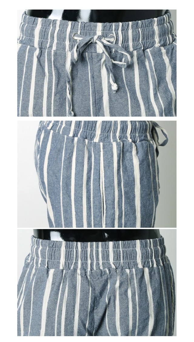 高級な生地とシンプルなデザインのパンツです。 腰にひもデザインで着用感が良く、全体・ストライプのデザインがポイントです。