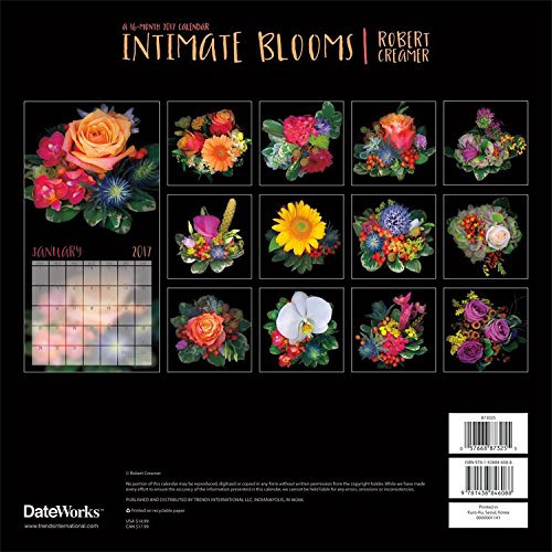 -. Binding : Office Product -. Brand : Trends International -. EAN : 0709257563763 -. Feature : 2017 Calendar featuring beautiful images for every month of the year. / Includes Holidays and Observances. / Keep your appointments and Birthdays organized in one place! / Perfect for office spaces, bedrooms, classrooms and more! / Makes a great gift for friends and family! -. Label : Trends International -. Manufacturer : Trends International -. MPN : 873025 -. NumberOfItems : 1 -. PackageQuantity : 1 -. PartNumber : 873025 -. ProductGroup : Office Product -. ProductTypeName : OFFICE_PRODUCTS -. Publisher : Trends International -. Studio : Trends International -. Title : 2017 INTIMATE BLOOMS - ROBERT CREAMER Calendar - 12 x 12 Wall Calendar -. UPC : 606345311667