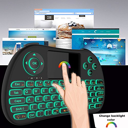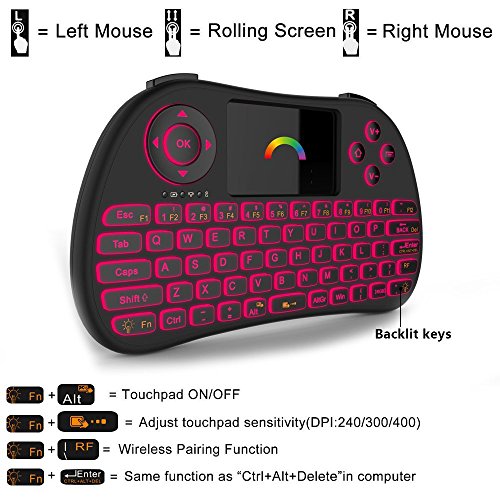 Quick View: This is a wonderful combo, 2.4GHz Colorful Backlit Mini Wireless QWERTY keyboard, TouchPad combo, with USB interface adapter. Perfect for the lecture, sales manager, presenter and others, from within a 15' radius to conduct presentation and operate PC wirelessly. Change slides and screen options, write on the screen, emphasize words and objects just by using this wireless mini keyboard and mouse with touchpad. Perfect for PC, Andriod TV Box, Google TV Box, etc.