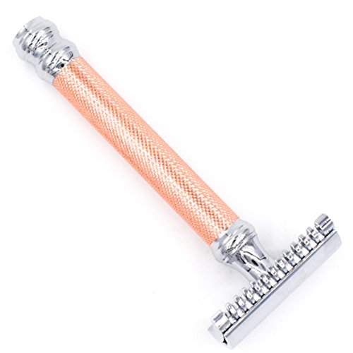 Parker 63C - ROSE GOLD Three Piece Ultra Smooth Shaving OPEN COMB Double Edge Safety Razor & 5 Shark Super Chrome Blades