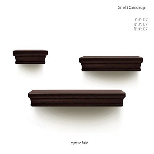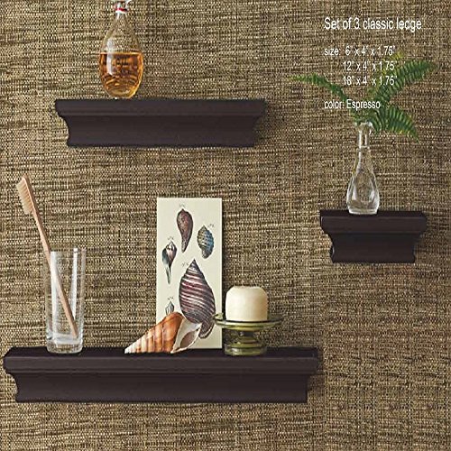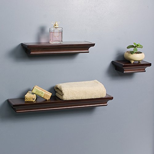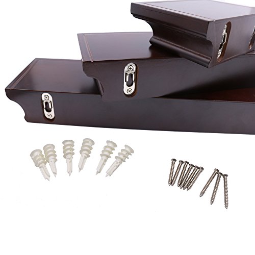 LightStan Contemporary Floating Wall Shelves Espresso Brown Finish Decorative Ledge Set of 3 pcs