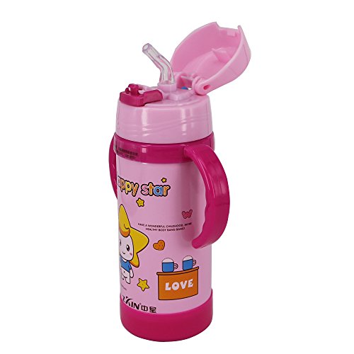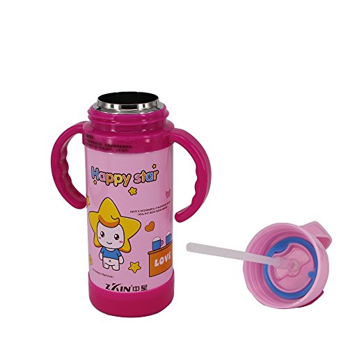 Vacuum Insulated Stainless Steel Water Bottle Wide Mouth Large Capacity with Straw Lid and Handle 350ML/11OZ Pink