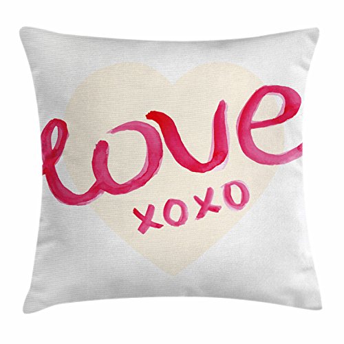 Xo Throw Pillow Cushion Cover by Ambesonne, Love Typography on a Heart Figure with Kisses Symbo...
