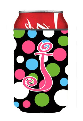 Letter J Initial Monogram - Polkadots and Pink Can or Bottle Beverage Insulator Hugger