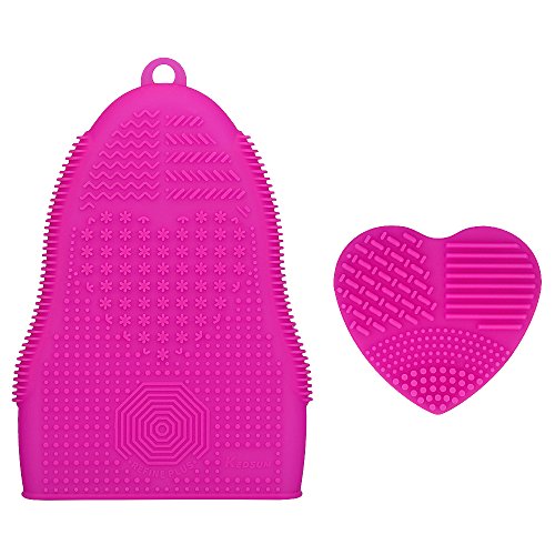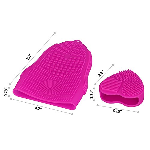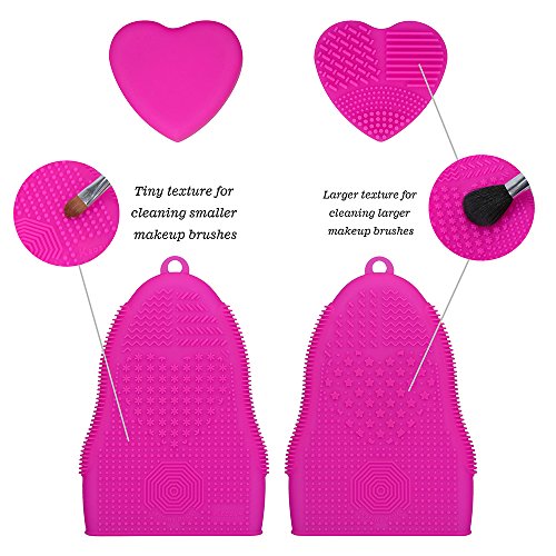 KEDSUM Silicone Makeup Brush Cleaning Mat Brush Cleaner,1 Brush Cleaning Glove with Handy Hook,1 Heart Shaped Small Mat,Set of 2