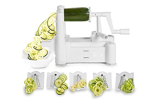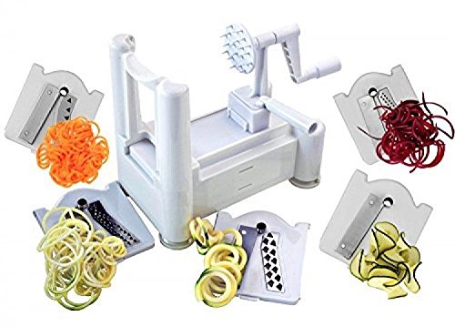 5 Blade Spiralizer Vegetable Spiral Slicer Best Veggie Pasta Spaghetti Maker for Low Carb Vegetable Maker Shredder Zucchini Noodles Veggie Spaghetti Professional Spiral Vegetable Slicer Kitchen Tool