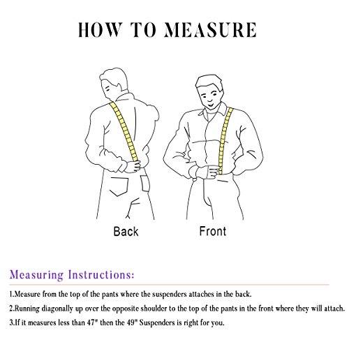 Binding : Apparel Product Description About GradeCode GradeCode with a slogan of "Code my Grades" is committed to bring costumers the top-quality and unique product. GradeCode have our own factory. Our professional designers design these suspenders for all ages and never make concession on quality. Choose Your Own Suspenders If you're new to suspenders, Keep it sample. Classical Solid Black of GradeCode is your best choice. The 1.38" wide and classic Y back design will work well on your shirt whatever style it is, Such as solid white, solid blue, solid gray, stripes or checks etc. In a word, the classical design will fit in well anywhere. If you already had a lot of plain solid colors, you can try patterns with subtle hues to have a refined, understated look, Such as Vintage Diagonal Stripe, Elegant Checkered and Steady Argyle of GradeCode. Size Guide 48 inch suspenders generally fit 5'9" to 6'2" tall52 inch suspenders generally fit 6' to 6'4" tallA number of different factors affect the right size, including the height, weight, and body shape of the person. So the size guide is only an advise.The best way to choose the appropriate size suspenders is to measure. Please refer to the picture above for the measurement method. If it measures less than 46" then the 48" Suspenders is right for you, if it measures less than 47" then the 49" Suspenders is right for you. Because You'd better reserve about 2" to adjust. Package includes: 1 suspenders 1 gift Box 1 drawstring bag Tips: 1.Wash as little as possible, if you want to wash, Hand-wash recommended 2.Wipe off the water on the metal then drying out. 0 |