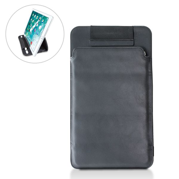 ●高級感あるソフトレザー素材がキズから守り、シンプルな形状でカバンに入れてもかさばらず、本体を折り曲げることでスタンド形状になる、ペンホルダーが付いたスリップインポーチです。