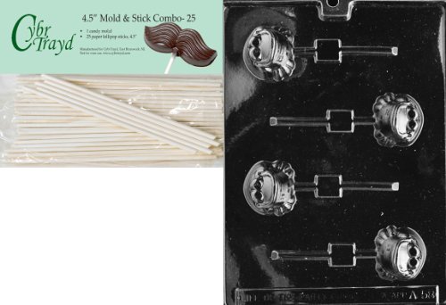 Cybrtrayd 45St25-A058 Frog Lolly Animal Chocolate Candy Mold with 25 4.5-Inch Lollipop Sticks