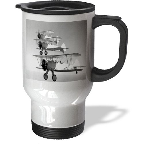 3dRose Old Black White Photo from 1936 Navy Stearmans in Practice, Stainless Steel Travel Mug, 14-Oz
