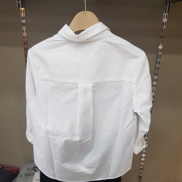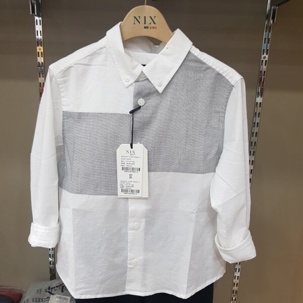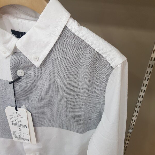 깔끔한 긴팔셔츠로가슴부분에 그레이색의 언발블럭모양이포인트