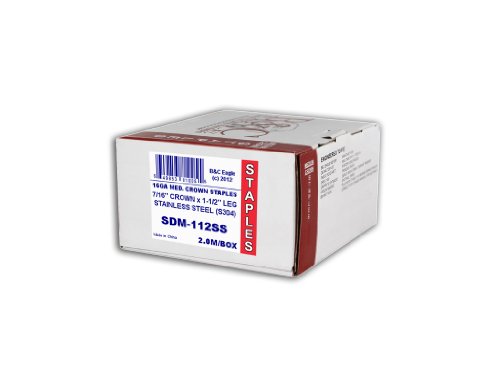 B&C Eagle SDM112SS-2M 1-1/2-Inch Length x 7/16-Inch Medium Crown x 16 Gauge S304 Stainless Steel Construction Staples (2,000 per box)