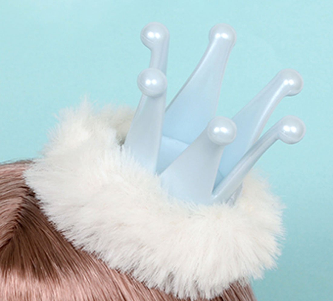 Accessories such as crown with fur, silver net tights, pearl white long boots, etc are also matched with the image of the country of snow and ice.