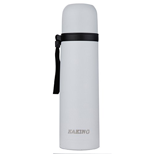 KAKING Insulated Stainless Steel Vacuum Water Bottle Beverage Bottle, Leak-proof Double Walled Travel Flask Keep Cold or Hot for More Than 24 Hours 17 Ounce (white)