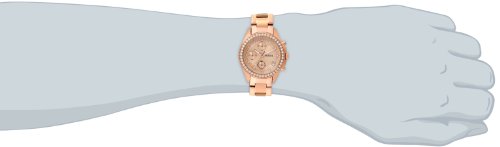 -. Feature : Rose gold-tone watch featuring crystal-set bezel, crystal hour markers, three chronograph subdials, and date window at 4 o'clock / 38 mm stainless steel case with mineral dial window / Quartz movement with analog display / Stainless steel bracelet with deployant buckle closure / Water resistant to 100 m (330 ft): In general, suitable for swimming and snorkeling, but not scuba diving