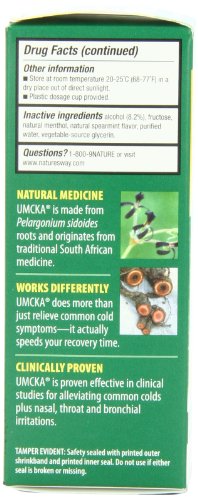 -. Binding : Health and Beauty -. Label : Nature's Way -. Manufacturer : Nature's Way -. NumberOfItems : 1 -. ProductGroup : Health and Beauty -. ProductTypeName : HEALTH_PERSONAL_CARE -. Publisher : Nature's Way -. Studio : Nature's Way -. Title : Nature's Way Umcka Menthol Syrup