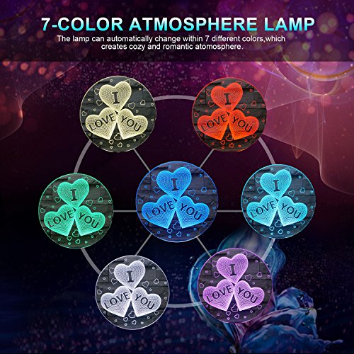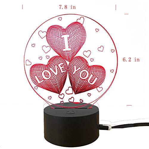 Valentine's Day 3D Optical Illusion Lamp , Aimetech Desk Lamp Night Light 7 Color Changing with USB for Bedroom Home Decoration(IOY)