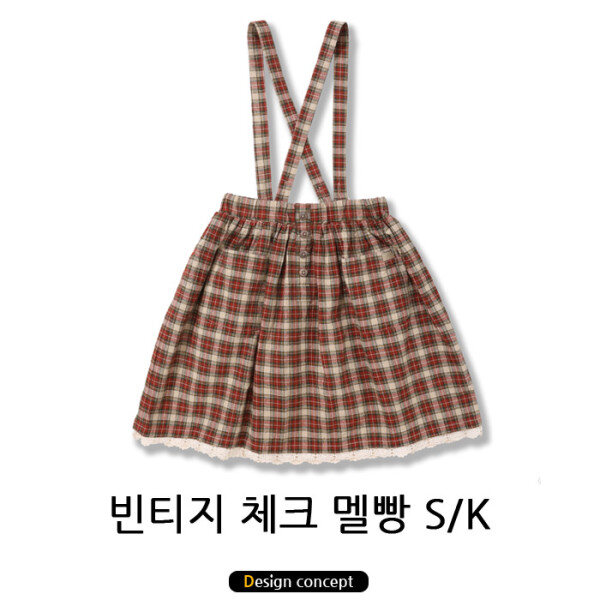 멋스러운 칼라감의 체크 멜빵 스커트입니다.탈착 가능한 멜빵 스커트로 다양하게 연출 가능한 아이템입니다.무릎 위까지 오는 기장입니다.