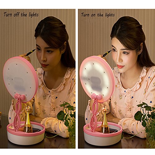 - 7 colors Atmosphere lamp:The cute mirror can act as an atmosphere lamp (switch is on the back of the mirror) by selecting 7 different colors(pink,red,blue,yellow,purple,green and white) for your preferences. Or work as a table lamp with 7 colors to make your room more nice.