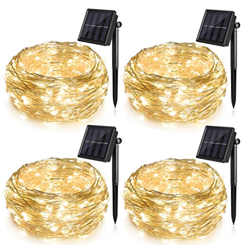 Outdoor Solar String Lights, 4 Pack ,Ankway 100 LED 8 Modes 3-Strands Copper Wire 39 ft Outdoor Fairy String Solar Lights for Garden, Patio, Window, Room, Tree, Fence and Yard
