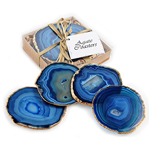 Set of 4 Gilt-Edged Blue Agate Coasters