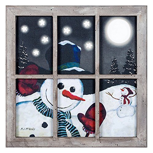 Window Peeking Snowman LED Light-up 10 x 10 inch Christmas Window Frame Wall Art