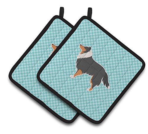 Caroline's Treasures Sheltie/Shetland Sheepdog Checkerboard Blue Pair of Pot Holders BB3730PTHD, 7.5HX7.5W, Multicolor