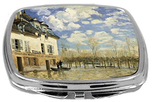 Rikki Knight Compact Mirror, Alfred Sisley Art Boat in The Flood at Port Marly, 3 Ounce