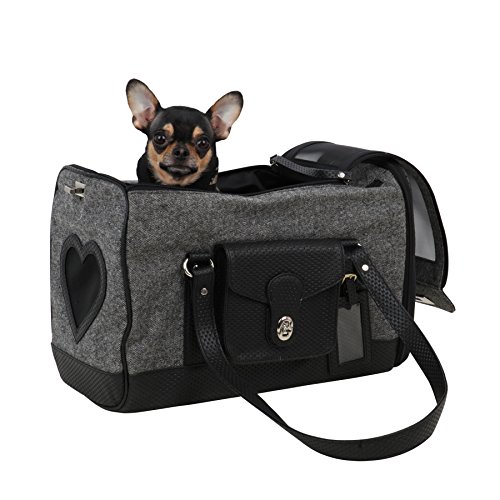 -. Feature : Luxurious look and feel / Topside zipper opening with heart shaped mesh windows / Inner leash holder for safety / Supports up to 7.5lb / Available in beige and black in one-sizes
