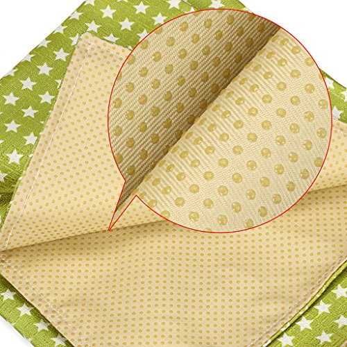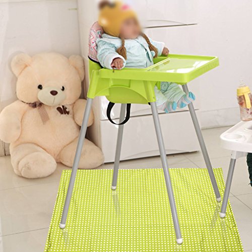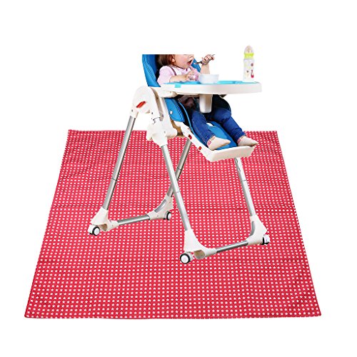 -. Feature : Carpet Saver- it is doing it's job protecting the carpet in your dining room.This mat is SO much better than vacuuming a rug or mopping the tile every time your little baby eats. It catches all the crumbs,spills and stains, and when a meal or a snack are finished, you just need to fold up the mat,take it outside and shake it out...done! It saving your rug and makes for an easy clean up / Machine Washable- Reusable Splat Mats are machine washable, making them easy to clean. Hang or tumble dry low, and use again and again. If you are tired of mopping every night. It is exactly what you are looking for. The material can been thrown in the washer without taking up a ton of space. And, it can also go in the dryer. / Size: 43.3*43.3inch. Safety, anti-slip granules backing to hold the cover in place Position it as a diamond under the high chair so that a point comes out of each side of the chair. This optimizes coverage over potential drop zones for you. You can also purchase it to use over your fancy table cloth so your child can make a mess as he pleases. / This is perfect for toddler to use while snacking in the living room. It's a nice small size for them to sit on while watching tv and drinking his milk or snacking. Easy to fold up and take with you if needed. You can use this Splat Mat when you're out and put it under her play blanket, keeps her nice and clean and dry when on the grass, or in a friend's house. / Great mat to help with your messy eater! Fits under high chair & catches most food. This would also be a good arts craft mat as well. The design matches the décor of kitchen which is a nice thing. This is a good mat that is very durable. Balled up and pulled from end to end without losing shape or tearing. This as a good mat to put under a high chair to save your floor from spills.
