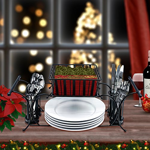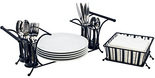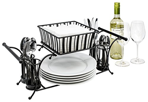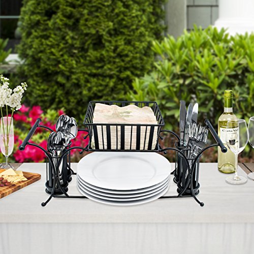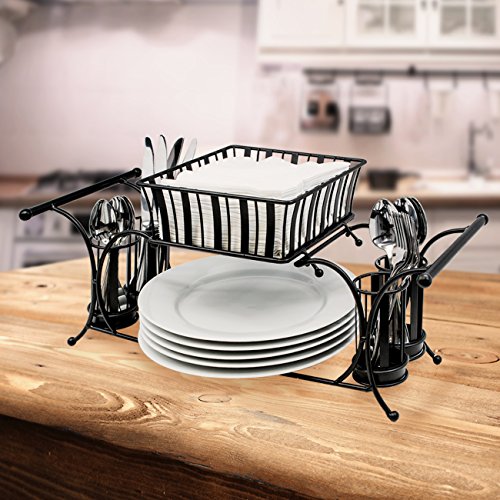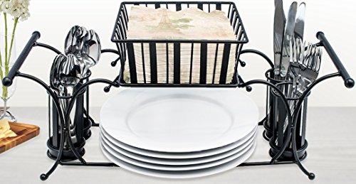 REMOVABLE NAPKIN HOLDER — Removable basket on top for napkins stacks above plate holder and easily detaches for separate serving piece or simple — Holds a variety of items (not just utensils and plates)