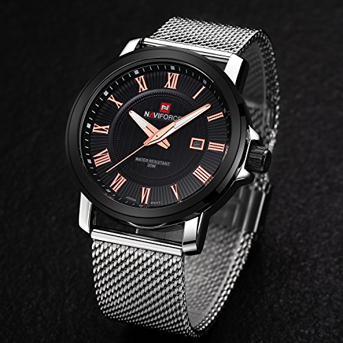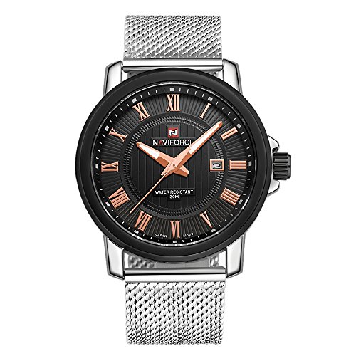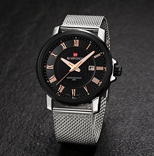NAVIFORCE스테인레스 스틸 쿼츠 밀리터리 맨즈 워치30M방수 손목시계