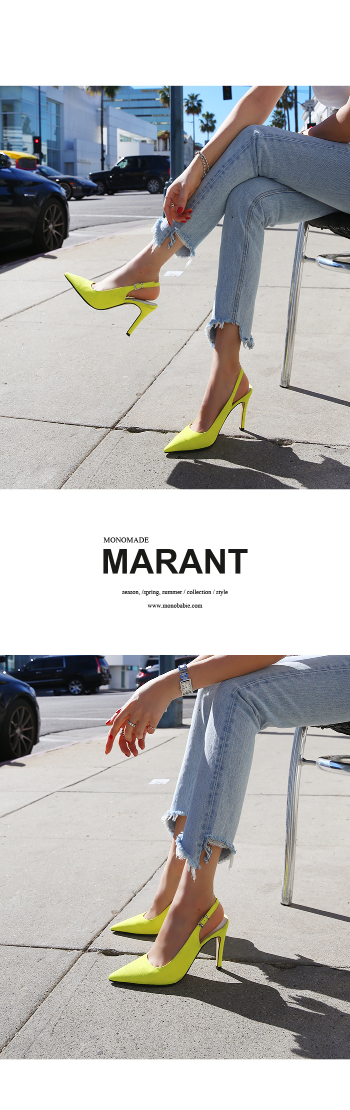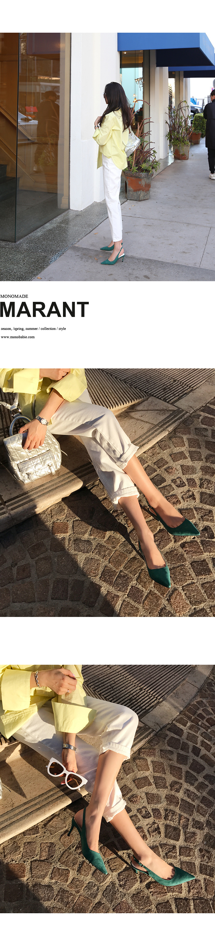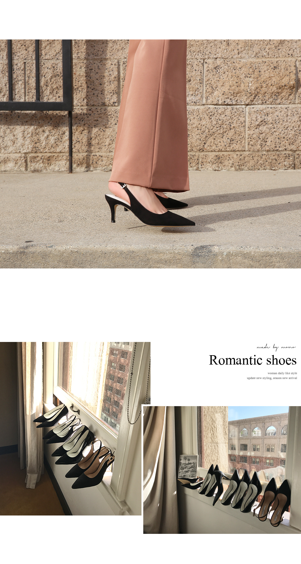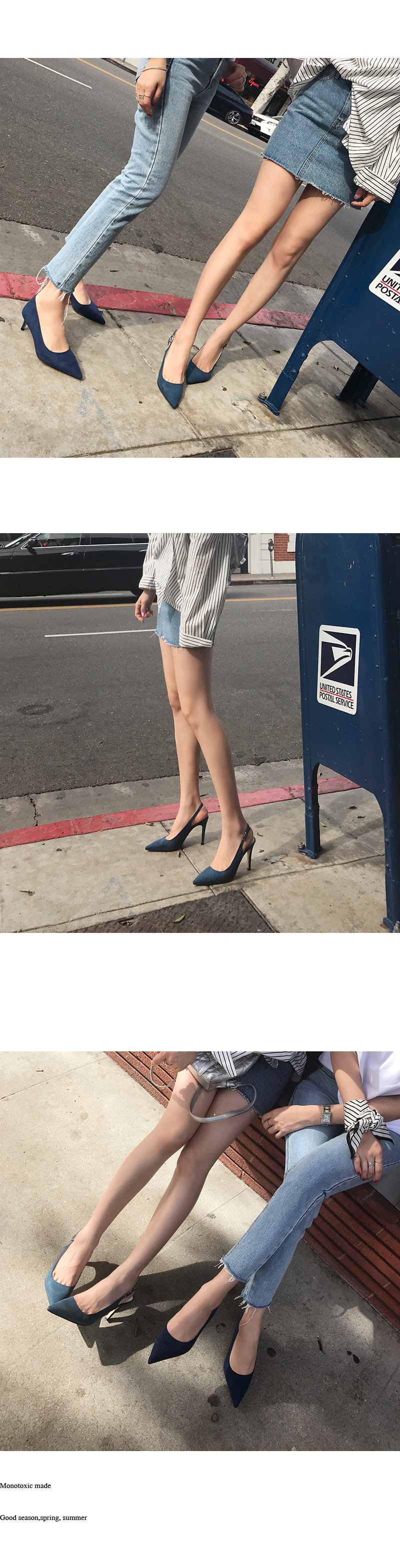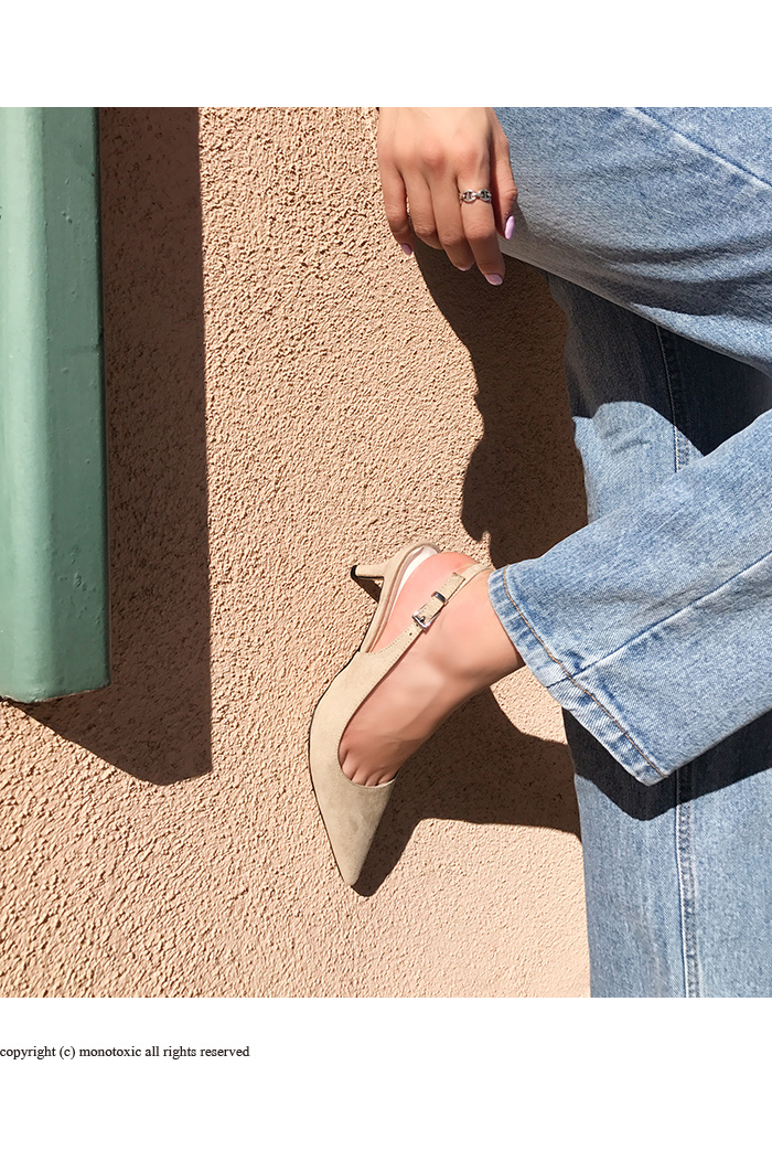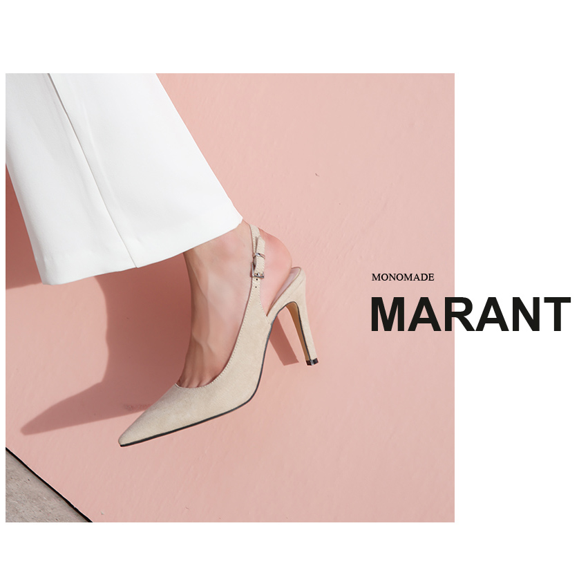 プレーン痴漢感性を完全に描いたスリングバックスティレットのパンプスです。