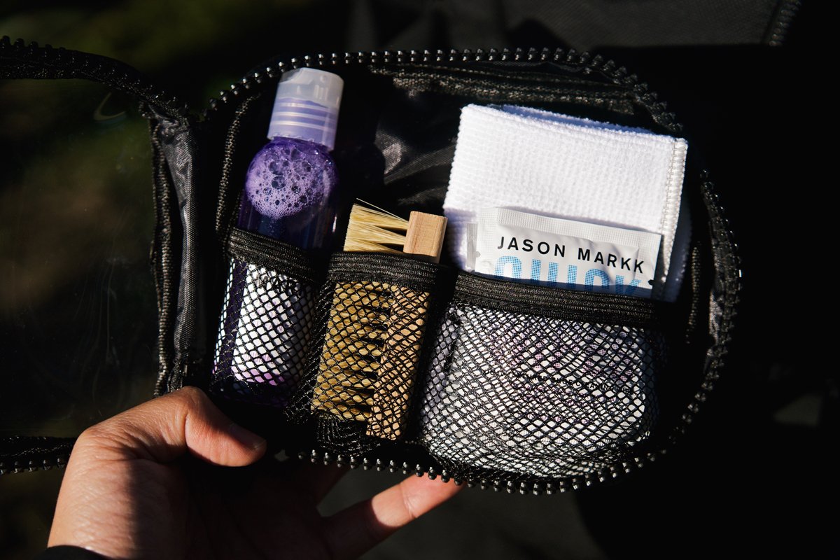 <JASON MARKK TRAVEL SHOE CLEANING KIT> developed as a special kit for easy and full-fledged cleaning of sneakers at travel destinations and on the go etc. is a premium shoe cleaner, a mini size premium cleaning brush
