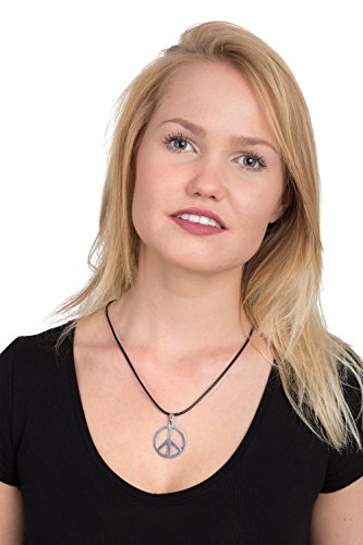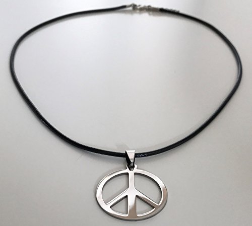 STYLE UP Peace Kette ★ Friedenszeichen ★, aus Metall mit schwarzem Halsband, Hippie Halskette