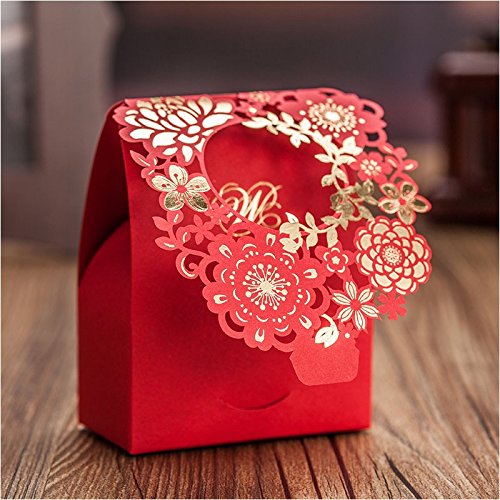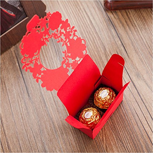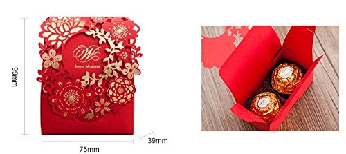 Since 50 X Red Sweet Wedding Candy Box 60pcs Gold Paper Laser Cut Flower Chocolate Gift Boxes as Wedding Favors